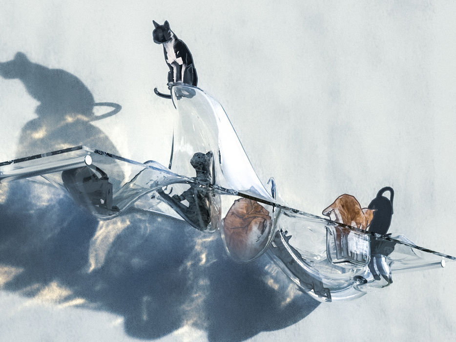 The transparent stage, named Neko-Yamah, consists of various holes, tunnels, dents and bulges. They invite cats to enter small holes and irregular crevices in various positions. This is a proposal for a cat playground in the Yamaha style.