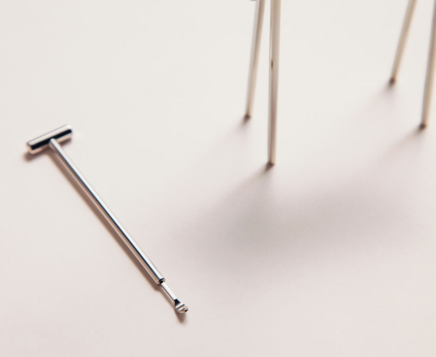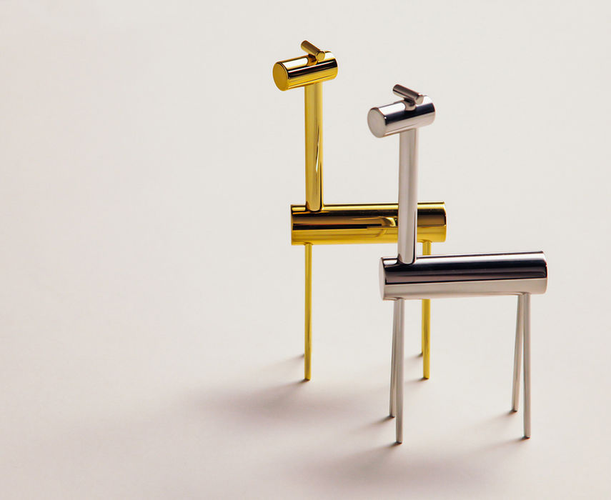 This is a giraffe-like ear pick with its stand. It's made by extrusion of metal as simple as possible and expressed an abstract giraffe shape. The part of the giraffe's ear is structured to be able to store the ear pick, aiming to be intermediate between the daily items and the interior object as an art.